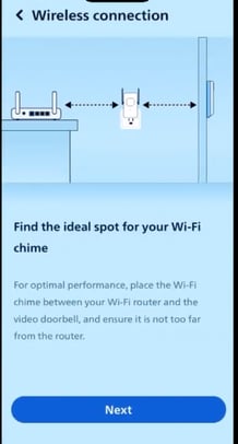 Follow the in-app instructions, then tap on "Next." - Plug your Wi-Fi chime into an outlet or power strip. It is recommended to plug it in between the home router and the doorbell to ensure a stable network