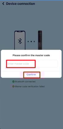 You will be directed to the Bluetooth pairing page, enter lock’s Master PIN code, then tap Next.